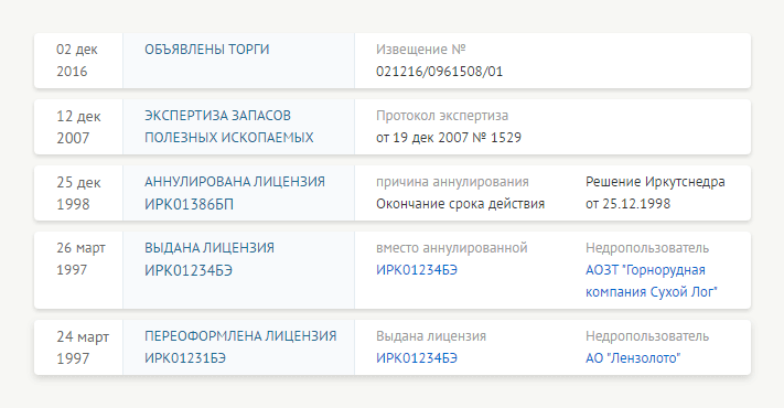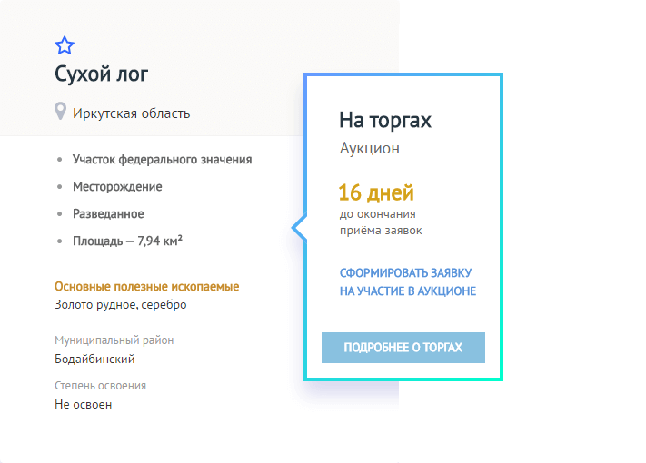 Информация о проведении аукционов и планируемых к лицензированию месторождениях и проявлениях